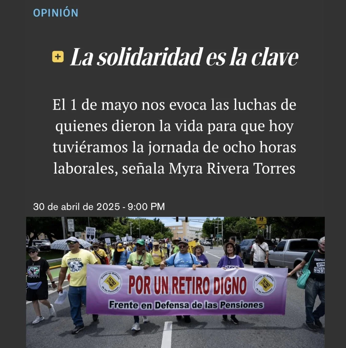 La campaña Retiro Digno acompaña y organiza a pensionados y pensionadas del sector público para fortalecer su participación en los procesos que impactan sus pensiones. Promovemos espacios de orientación, diálogo y acción colectiva enfocados en la protección de la seguridad económica de quienes dedicaron su vida al servicio de Puerto Rico, reafirmando el valor del retiro como un derecho adquirido y una etapa que debe vivirse con dignidad y estabilidad.